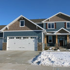 Krumwiede Roofing & Exteriors Installed new James Hardie Fiber Cement Lap & Shake Siding. 5" Crown Molding and James Hardie Beaded Soffit was installed on this elevation.