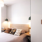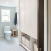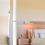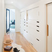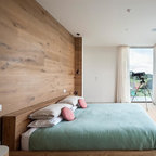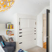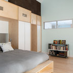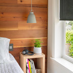 Residential remodel of an attic space added a master bedroom, master bath and nursery as well as much-needed built-in custom storage into the hallway and eave spaces. Light-filled on even the most overcast days, this Portland residence is bright and airy with balance of natural materials playing off a white backdrop. The cedar wood plank walls in the master bedroom and bath give a tactile sense of natural materials and make the rooms glow.
