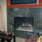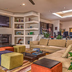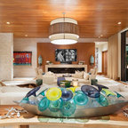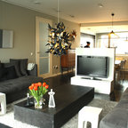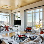 他の地域のコンテンポラリースタイルのおしゃれなリビング (青い壁) の写真 — Houzz