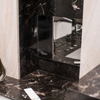 tv and wine cooler? in bathroom no thanks but nice floor into shower