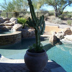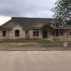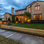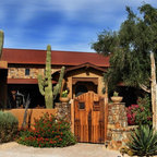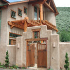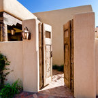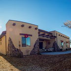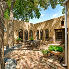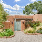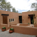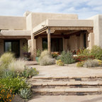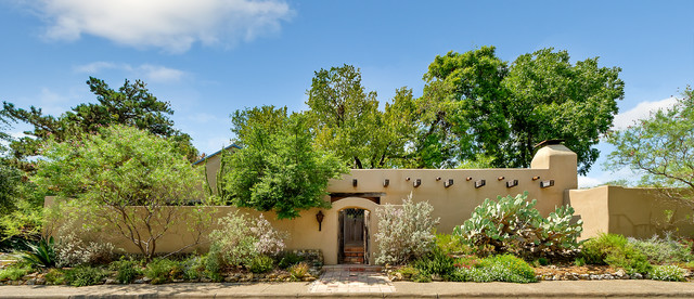 ダラスのサンタフェスタイルのおしゃれな平屋 (ベージュの外壁) の写真 — Houzz