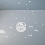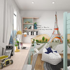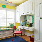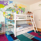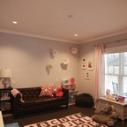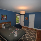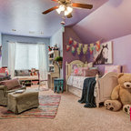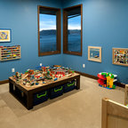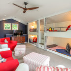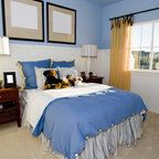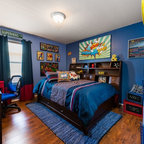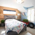 オレンジカウンティの中サイズのカントリー風おしゃれな子供部屋 (青い壁、カーペット敷き、児童向け) の写真 — Houzz
