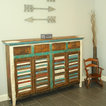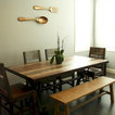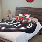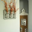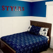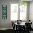 Boys room: repurposed dark wooden letters with a high gloss red paint, paired with a red gloss retro vintage clock (not shown).