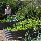 In a compact veggie garden in Massachusetts, red and pink zinnias provide hits of color and are attractive beacons for pollinators amidst plantings of sprouting broccoli, romaine lettuce and sweet basil. Water requirement: Moderate to regular Light requirement: Full sun