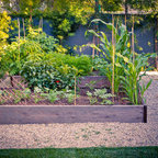 Pops of Color In a compact veggie garden in Massachusetts, red and pink zinnias provide hits of color and are attractive beacons for pollinators amidst plantings of sprouting broccoli, romaine lettuce and sweet basil. Water requirement: Moderate to regular Light requirement: Full sun