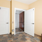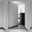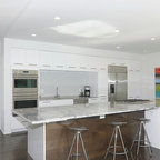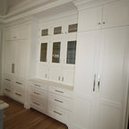 Having a wall of cabinets along the wall looks very clean. These are push, instead of having pulls, so it is seamless like a wall.