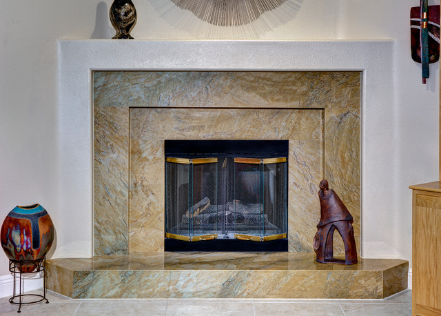 Southwest quartzite fire place tile surround. Welcome to the desert.