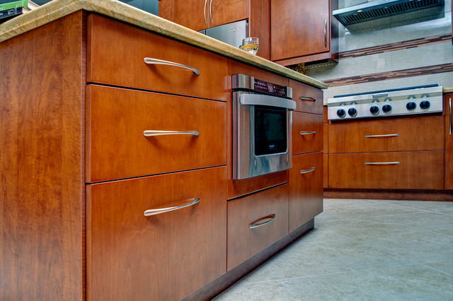 This island features a microwave drawer - most convenient for the home chef. No more reaching up over a hot stove to retrieve the microwaved and hot food. Smart install.