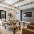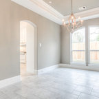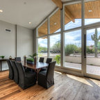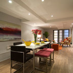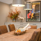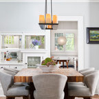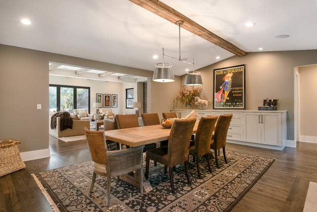 サンフランシスコのトランジショナルスタイルのおしゃれな独立型ダイニング (グレーの壁、濃色無垢フローリング) の写真 — Houzz