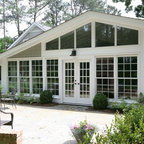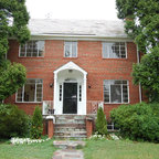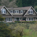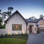 サンディエゴのトラディショナルスタイルのおしゃれな家の外観 (漆喰サイディング、茶色い外壁、寄棟屋根、戸建、瓦屋根) の写真 — Houzz