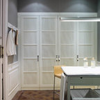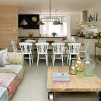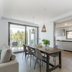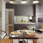 En una misma cocina, la separación acristalada, como esta, es una de las mejores opciones porque no se rompe la continuidad visual y se gana en sensación de amplitud. Es la división justa porque permite ver a la persona que está cocinando mientras se come, pero sin sentirse entre fogones. También contribuyen a crear un espacio cálido y confortable. Esta cocina Deulonder, expuesta en la edición de Casadecor Madrid del 2013, contaba además con una separación acristalada que la unía-distinguía de la zona de lavadero.Policarbonato: Una alternativa rentable al cristal