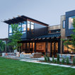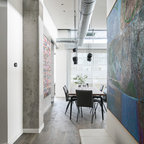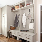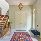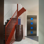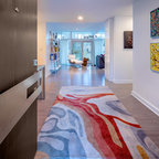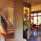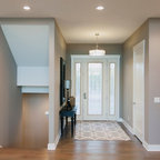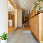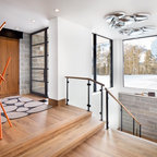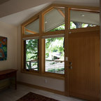 デンバーの片開きドアコンテンポラリースタイルのおしゃれな玄関 (淡色木目調のドア) の写真 — Houzz