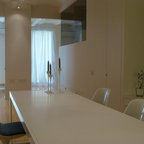 バルセロナの中くらいのコンテンポラリースタイルのおしゃれなダイニングキッチン (白い壁、暖炉なし) の写真 — Houzz