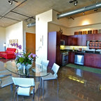 サンフランシスコの大きいモダンスタイルのおしゃれなLDK (セラミックタイルの床、グレーの床) の写真 — Houzz