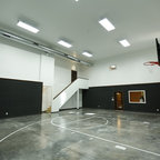 他の地域のラスティックスタイルのおしゃれな多目的ジム (濃色無垢フローリング) の写真 — Houzz