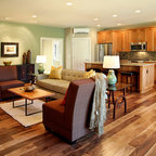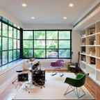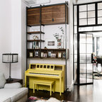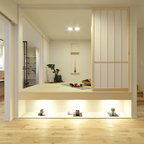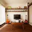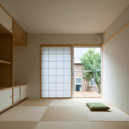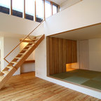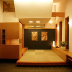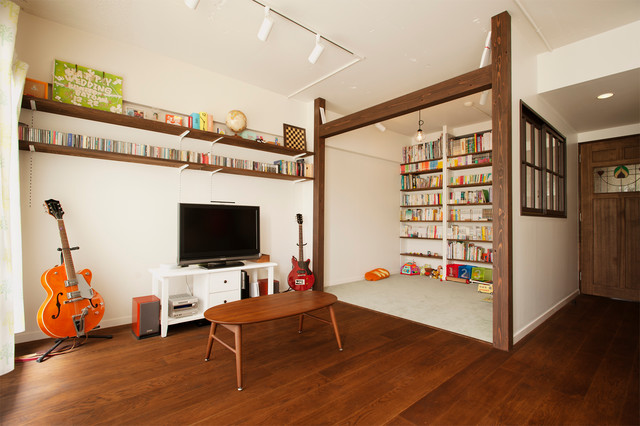 東京都下の中サイズのアジアンスタイルのおしゃれなファミリールーム (ミュージックルーム、濃色無垢フローリング、据え置き型テレビ) の写真 — Houzz