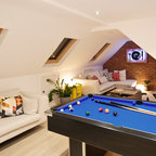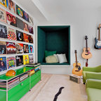 Like this creative/interesting way of setting off the playroom from an attached TV room