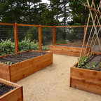 The enclosed organic vegetable garden has its own watering system, mesh fencing that extends underground to keep critters out and raised beds for all vegetables. The wood is cedar, and a convenient garden shed is attached.