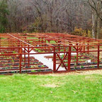 Garden fencing idea- only stain black, with black wiring & higher.