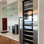 The True 48- 48" Side-by-side Refrigerator/Freezer with 15" Wine Cabinet, 15" Clear Ice Machine, and 24" Undercounter Freezer Drawers.