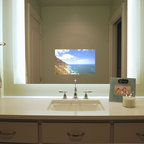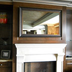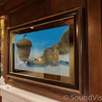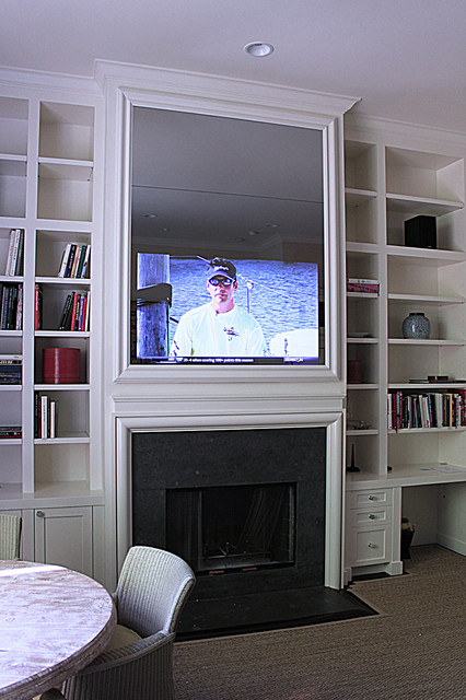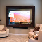 Designed in collaboration with Benjamin Dhong Interiors, this large Television Mirror incorporates a 60" LED TV and a custom millwork frame to match the surrounding cabinetry