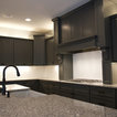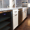 This expansive kitchen has a 4'x12' center island with two built-in dishwashers, beverage center, farmhouse sink and garage center. The built-in appliances are set in custom cabinetry in a premium gray finish.
