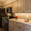 Kitchen cabinetry with storage and organization and under-cabinet lighting for a bright work surface