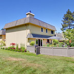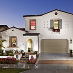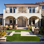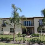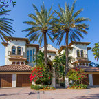 サンディエゴの地中海スタイルのおしゃれな家の外観 (漆喰サイディング、ベージュの外壁、寄棟屋根) の写真 — Houzz