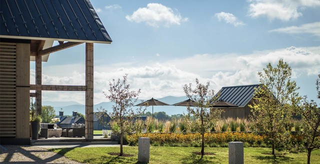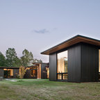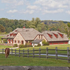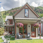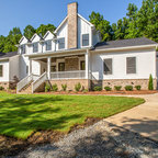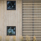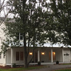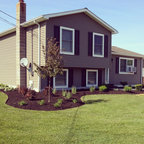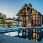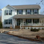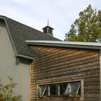 バーリントンのカントリー風おしゃれな家の外観 (木材サイディング、茶色い外壁、切妻屋根) の写真 — Houzz