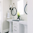 I’m not excited by the idea of a pedestal sink but this shows a conservative use of space