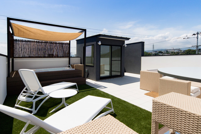 他の地域のコンテンポラリースタイルのおしゃれな屋上のデッキ (日よけなし) の写真 —  Houzz