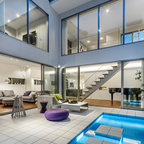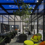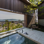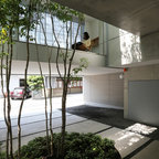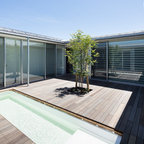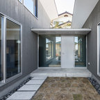 他の地域のモダンスタイルのおしゃれな横庭のテラス (天然石敷き、日よけなし) の写真 — Houzz