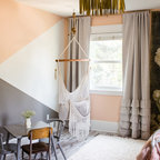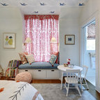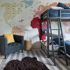ワシントンD.C.の中サイズのトランジショナルスタイルのおしゃれな子供部屋 (マルチカラーの壁、濃色無垢フローリング、児童向け、茶色い床) の写真 — Houzz