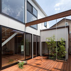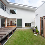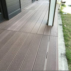 リビングの前は、リビングと同じ高さで開放感のあるテラスデッキにしました。床は、デザインコンクリートのマットスタンプ(ヴィンテージウッド)。