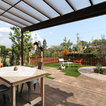 雨風や日よけのためのテラス屋根も設置し、どんな時にでも楽しめるようにしました。