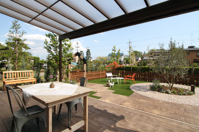 他の地域のカントリー風おしゃれなデッキ (パーゴラ) の写真 — Houzz
