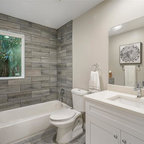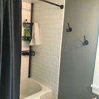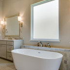 サンフランシスコのカントリー風おしゃれな浴室 (シェーカースタイル扉のキャビネット、白いキャビネット、置き型浴槽) の写真 — Houzz