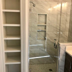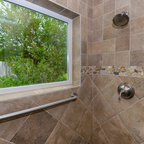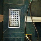 We like everything here. It's another example of Kohler Brockway with subway tile. The floor tile is neat.