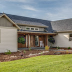 combination of different types of siding. Gavalume roof.