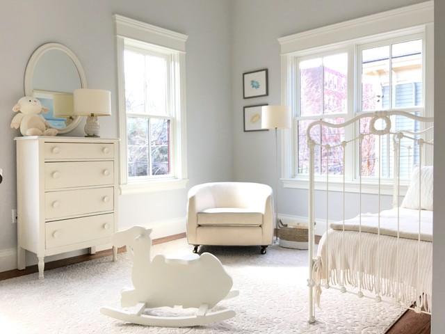 ボストンのトランジショナルスタイルのおしゃれな子供部屋 (グレーの壁、濃色無垢フローリング) の写真 — Houzz