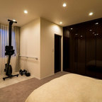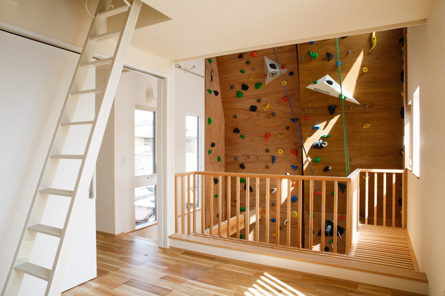 京都のモダンスタイルのおしゃれなクライミングウォール (茶色い壁、無垢フローリング、茶色い床) の写真 — Houzz