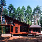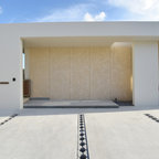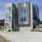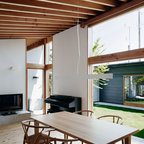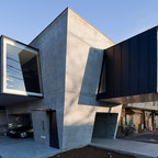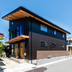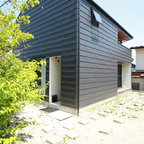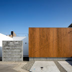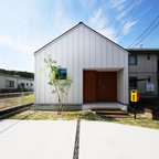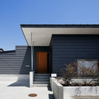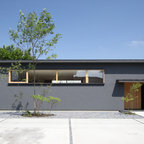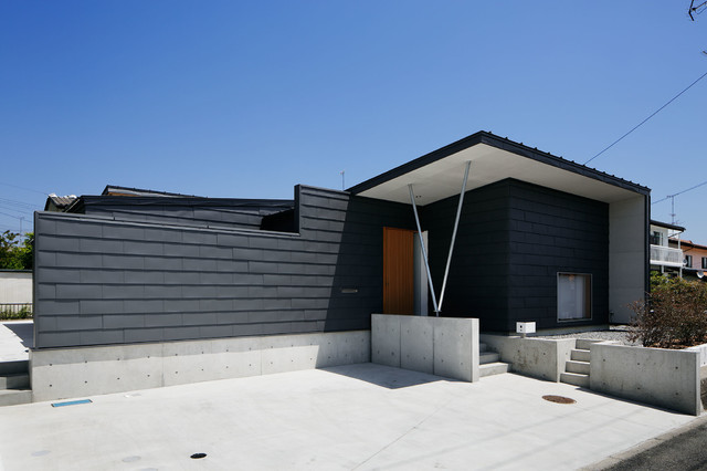 他の地域のモダンスタイルのおしゃれな平屋 (戸建、グレーの外壁、片流れ屋根、金属屋根) の写真 — Houzz