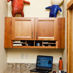 Custom designed floating shelf. Great idea for small spaces.