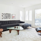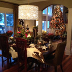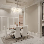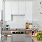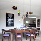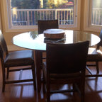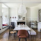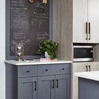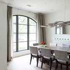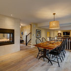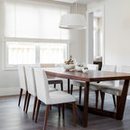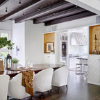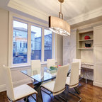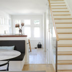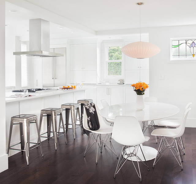 バンクーバーのトランジショナルスタイルのおしゃれなダイニングキッチン (白い壁、濃色無垢フローリング) の写真 — Houzz