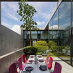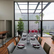 Could Replace wall and 3 windows with all glass and nice courtyard