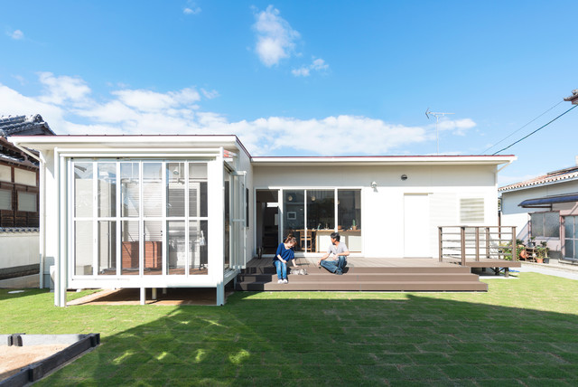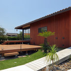 他の地域のアジアンスタイルのおしゃれな裏庭のデッキ (日よけなし) の写真 — Houzz