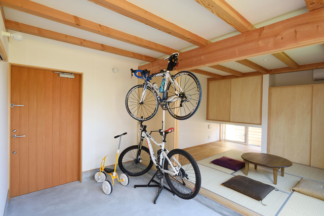 玄関は広々とした土間空間。ご主人の趣味の自転車整備も出来る、ゆったりとしたスペース。